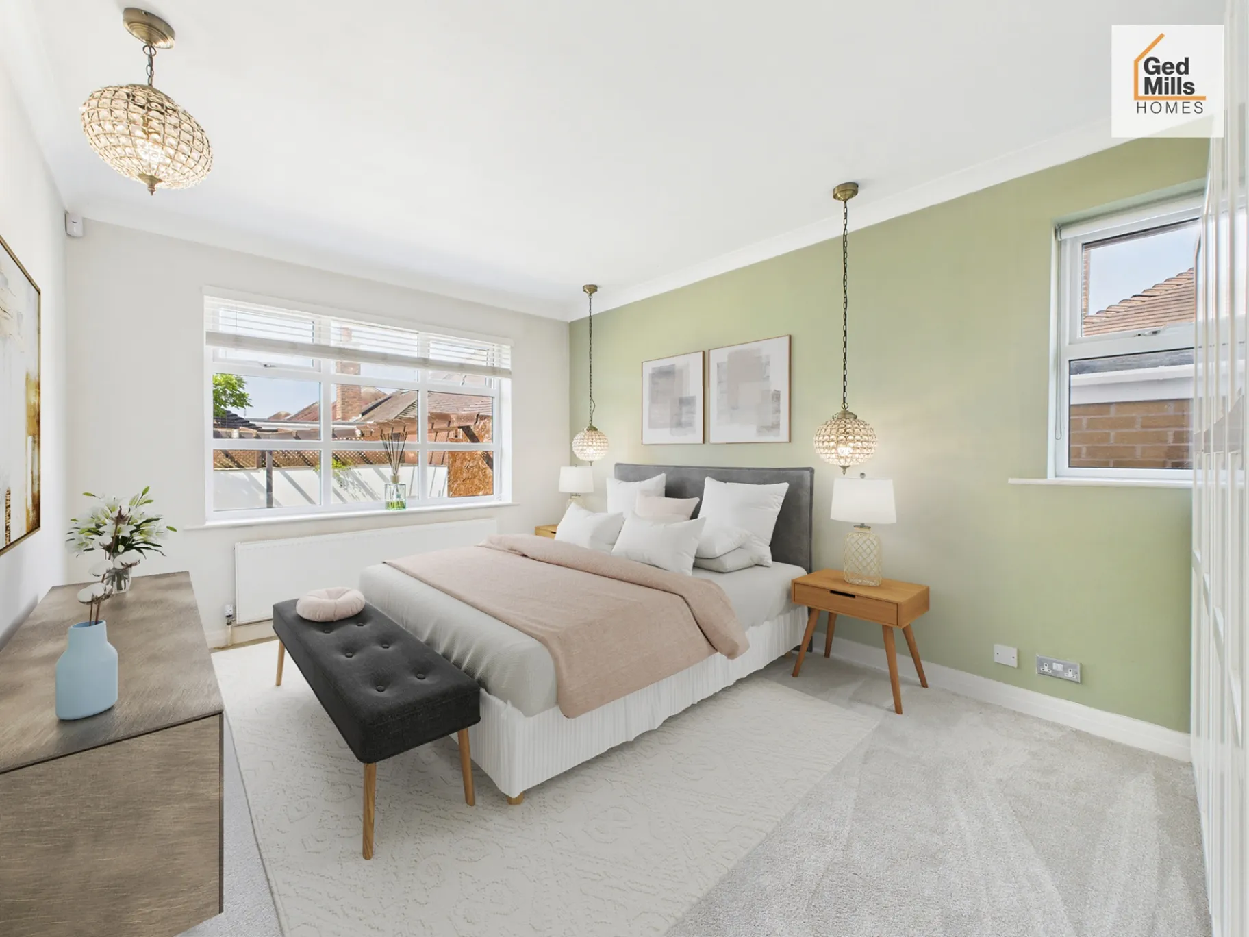 Both bedrooms are well presented, with the principal bedroom featuring built-in wardrobes and a stylish en-suite shower room. A second contemporary bathroom serves guests and the additional bedroom, giving the property an ideal balance for couples, small families or downsizers who still want room for visitors.