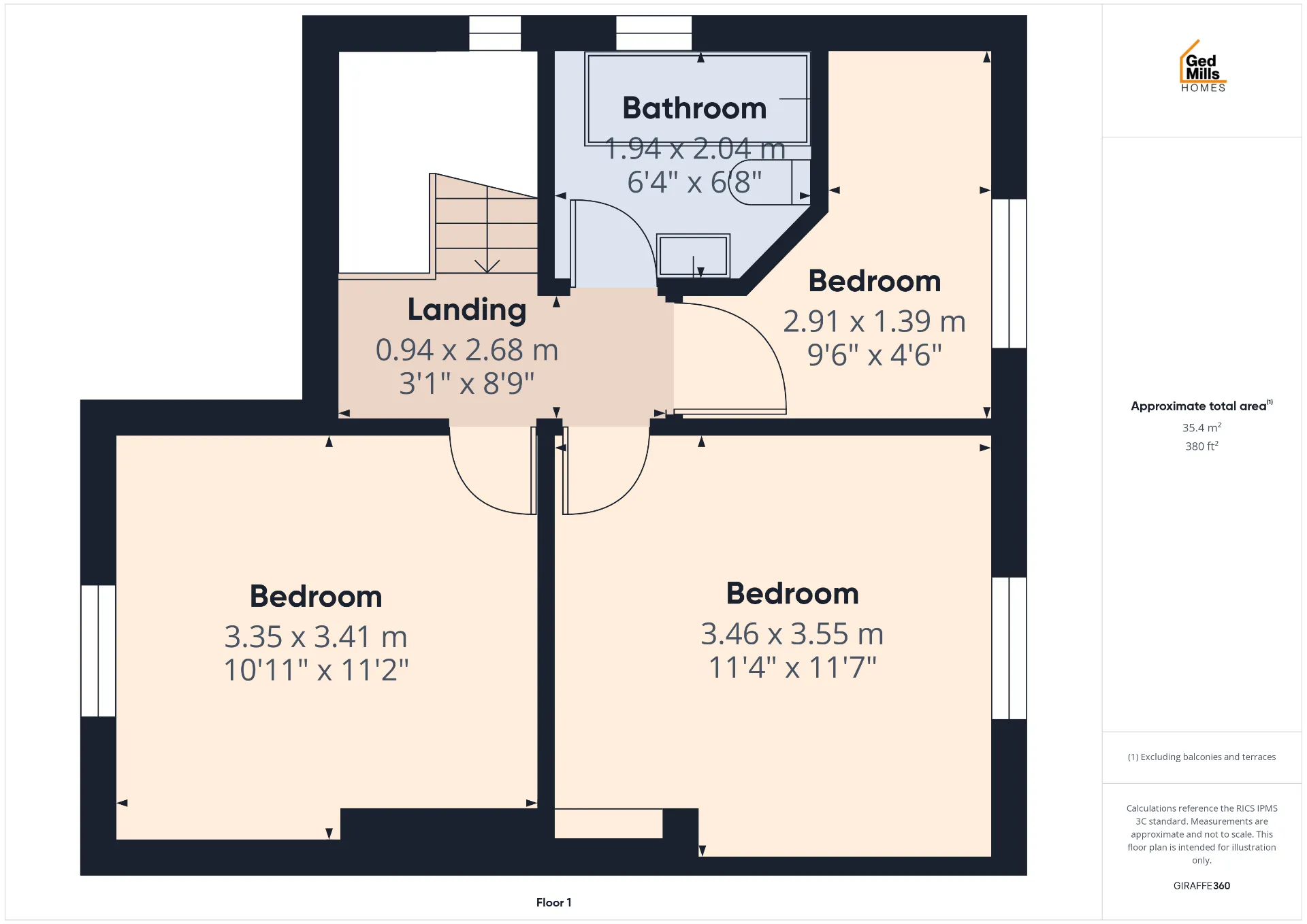 Upstairs, three well-proportioned bedrooms offer comfortable accommodation for families, guests or home working. A contemporary fitted bathroom serves this floor, completing a practical layout that supports busy daily routines with ease.