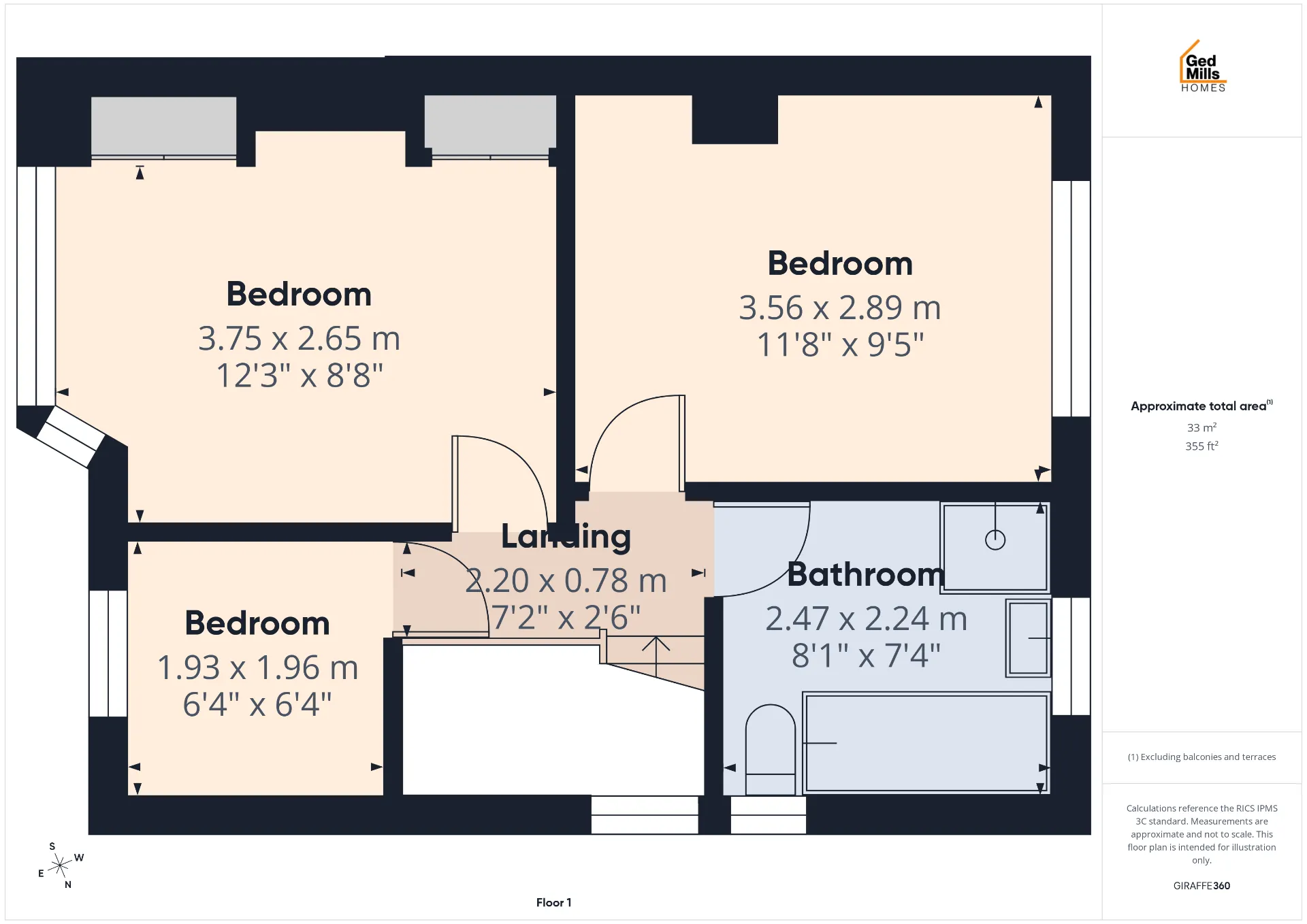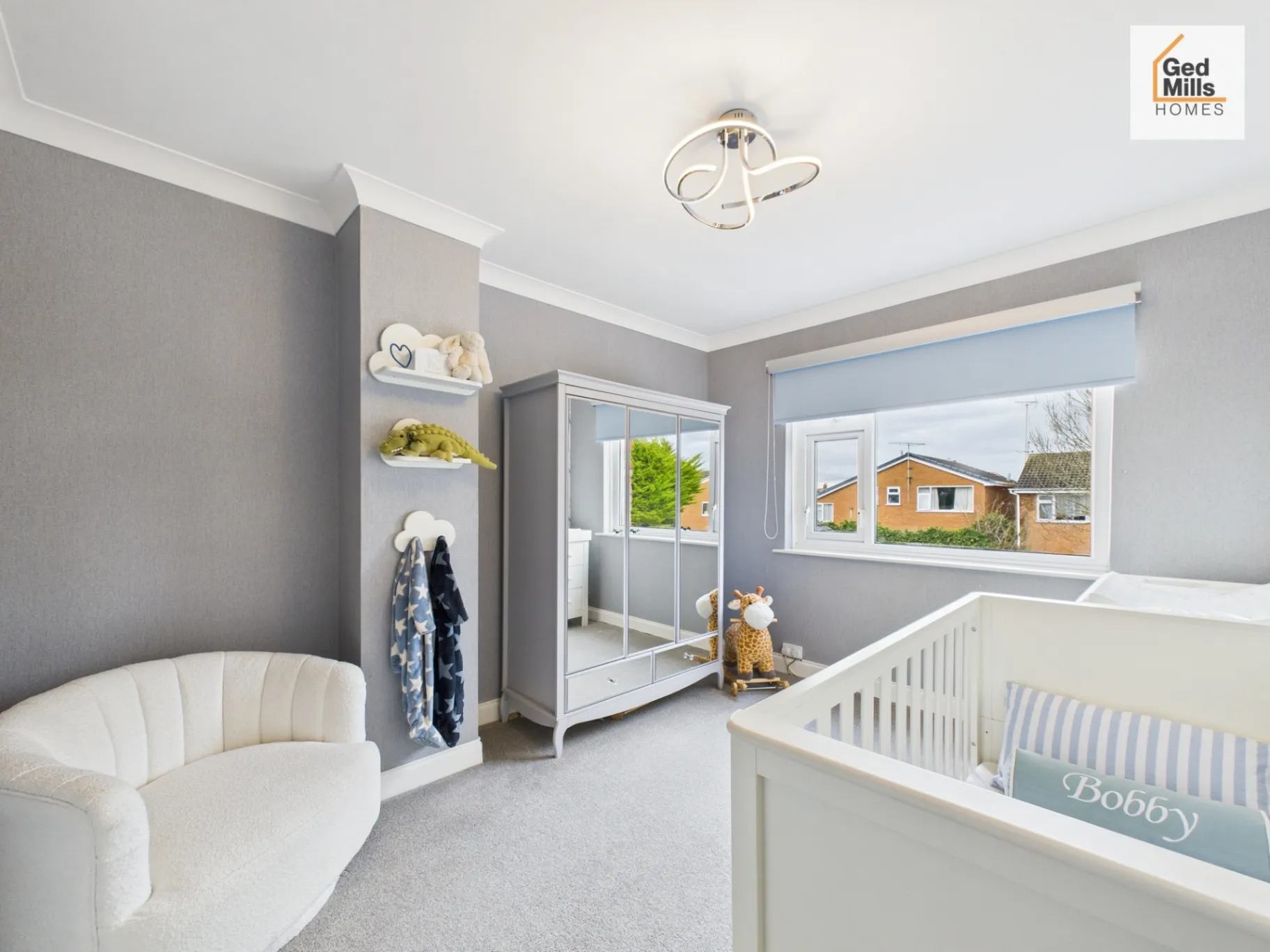 Upstairs, three well-proportioned bedrooms provide balanced accommodation, with the principal bedroom featuring contemporary fitted wardrobes. A stylish four-piece family bathroom serves this level, bringing the total to one bathroom and two toilets overall.