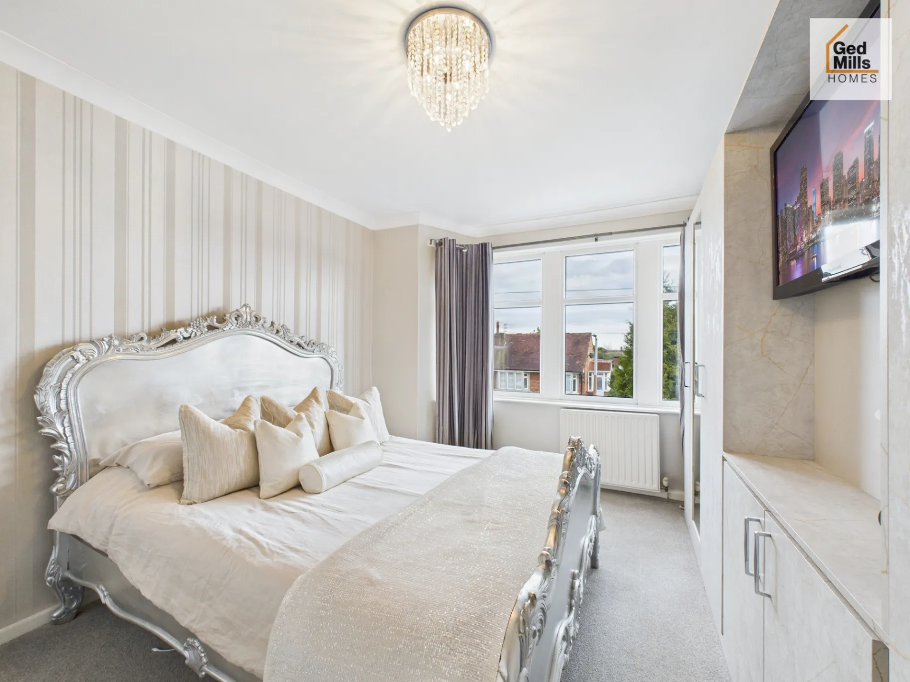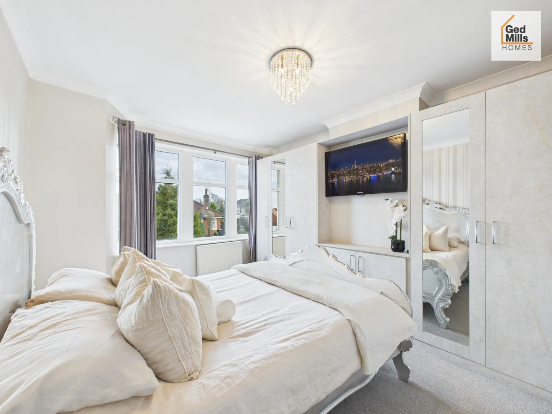 Master bedroom with modern fitted wardrobes
