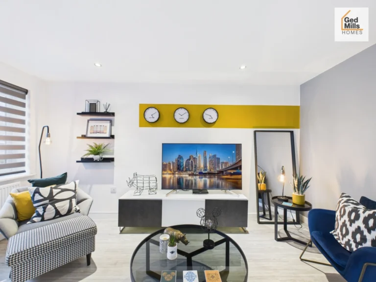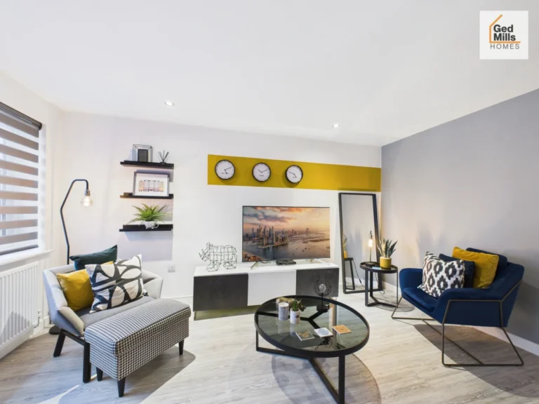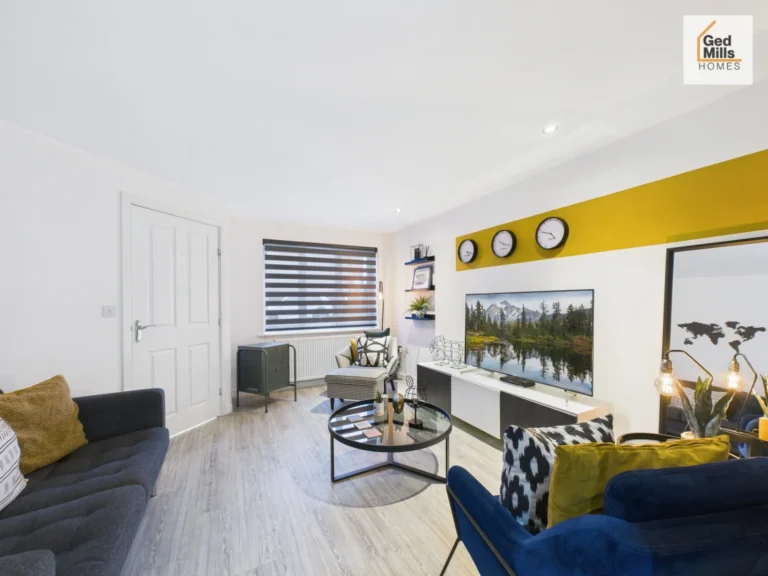 Modernised Lounge with Media Wall and Wood Flooring