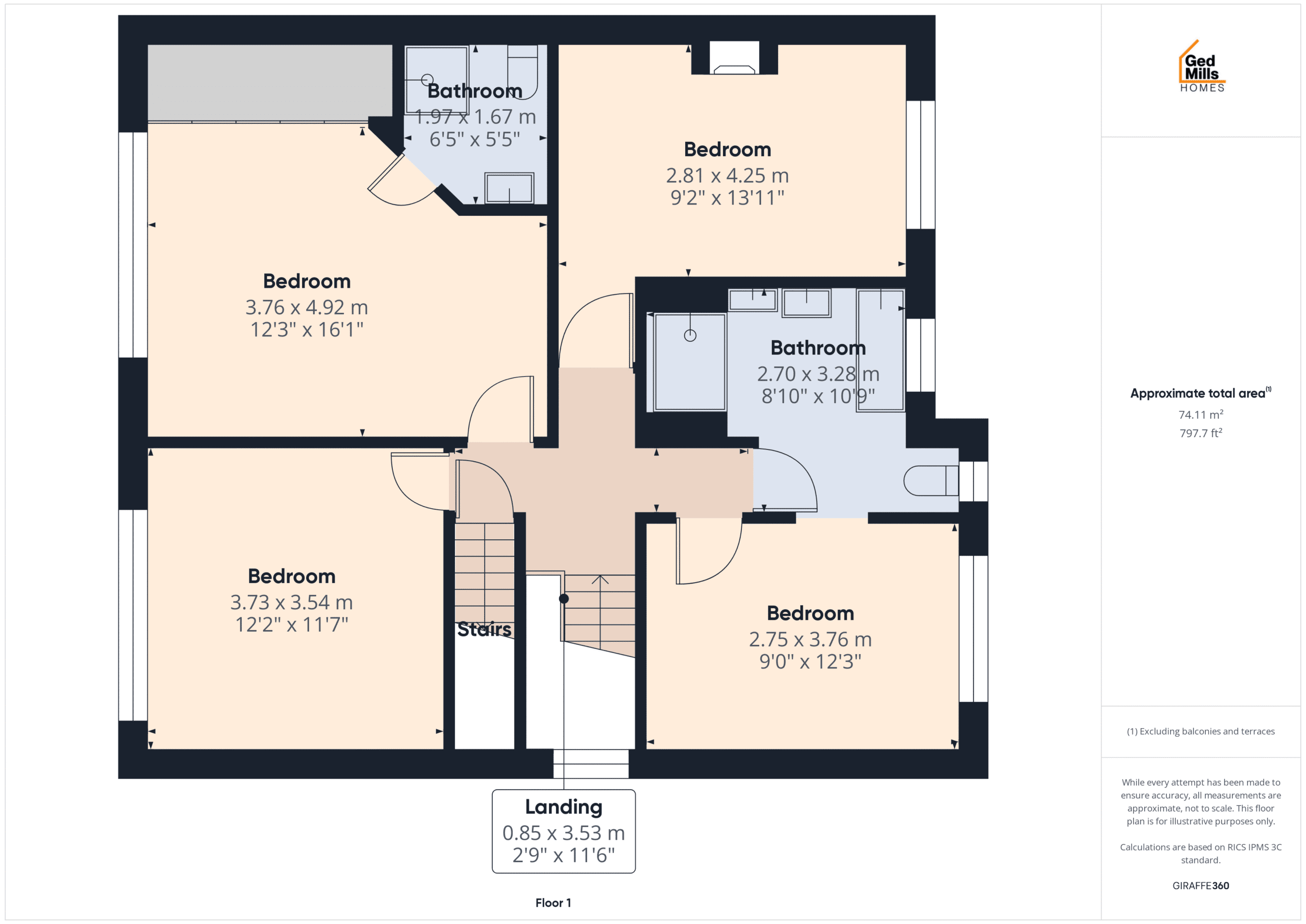 Three modern bathrooms, including two en suites